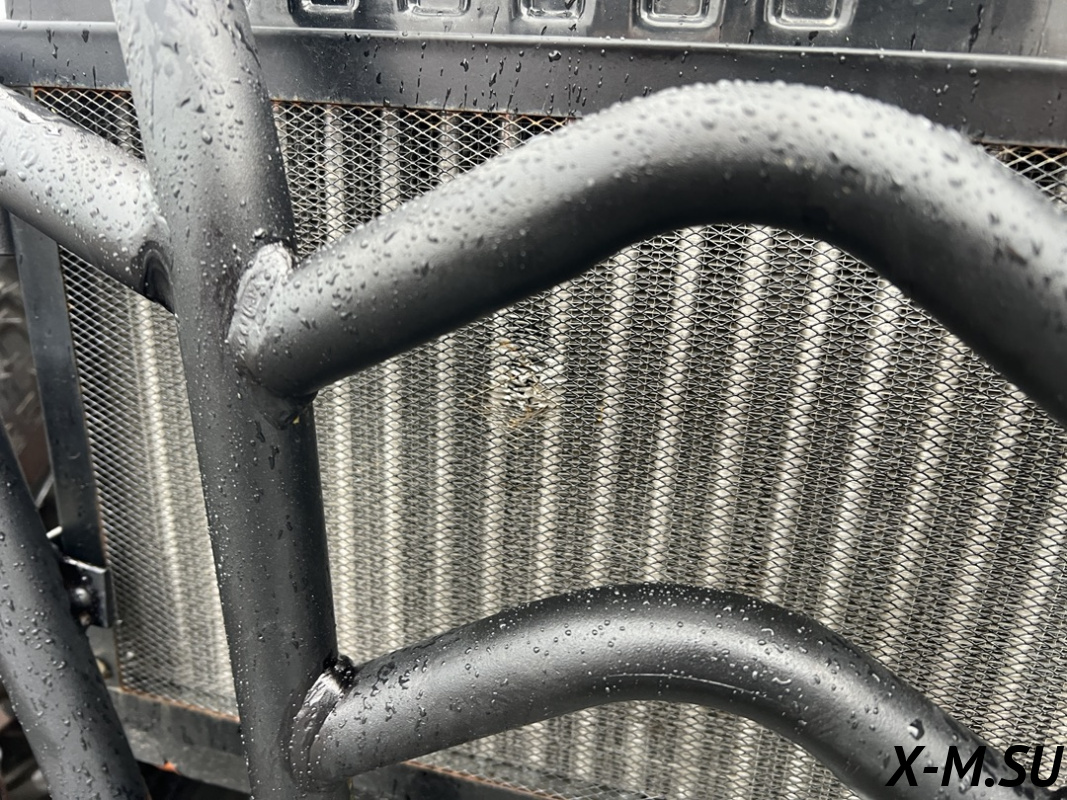 Передняя часть квадроцикла усилена в виде несущего бампера ,идущего по контуру всего квадроцикла и крепится к несущей раме, сделано это для жёсткости несущей конструкции при преодолении серьёзных препятствий и уклонов дороги.