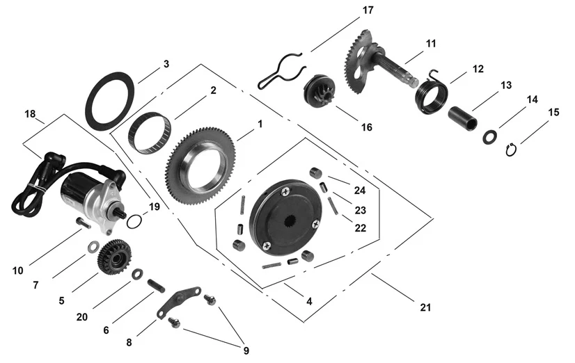 Привод кик-стартера и пусковой механизм КВАДРОЦИКЛА STELS ATV 50 C